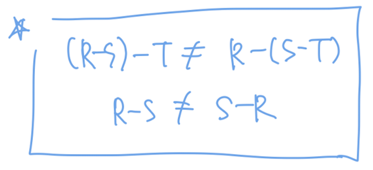 합집합, 교집합, 카티션 프로덕트는 결합법칙, 교환법칙이 성립하지만,