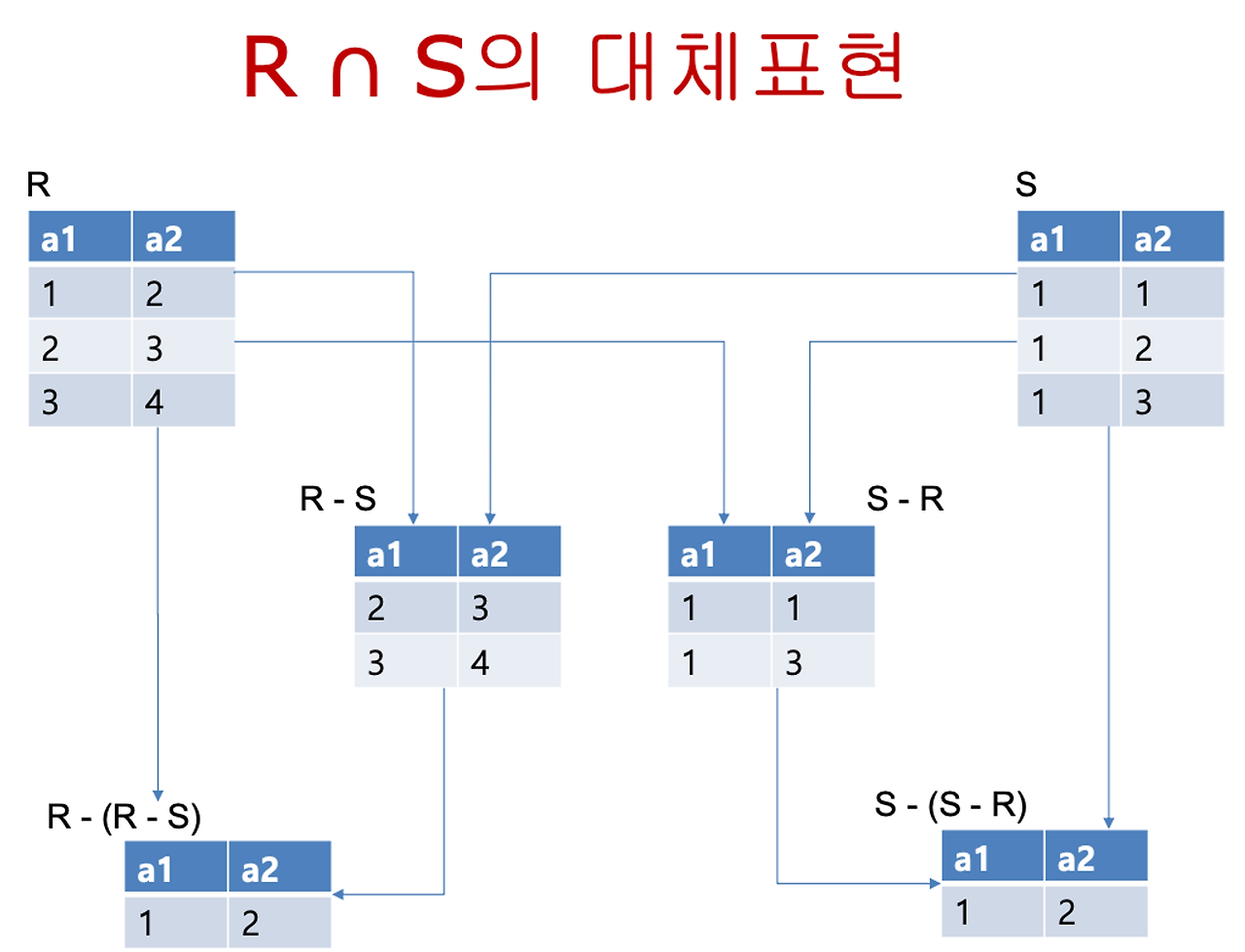 예를 들면, 교집합, 조인, 디비전이 있다.