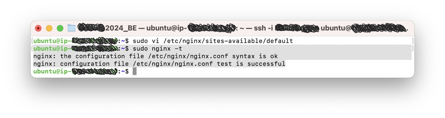 `sudo service nginx restart` 로 nginx 를 재시작해줍니다.